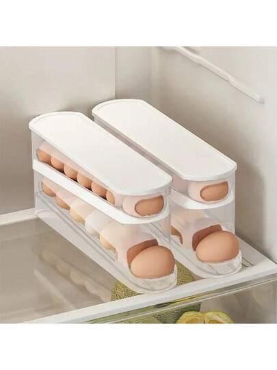 Caja de almacenamiento de huevos de doble capa, soporte de huevos con dispensador automático en estilo escalera para refrigerador, organizador de huevos - Blanco - Añade 1