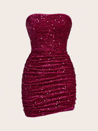 SHEIN ICON Vestido tubo negro con lentejuelas para una noche de cita ajustado al Body - Rosa Fucsia - Añade 1