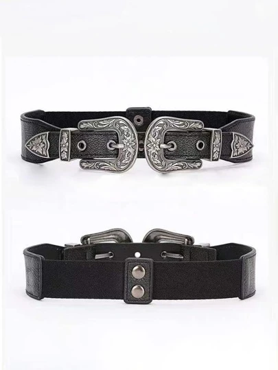 1 pieza Cinturón de mujer estilo bohemio con hebilla occidental, para verano, escuela, otoño, Halloween - Negro - Añade 2