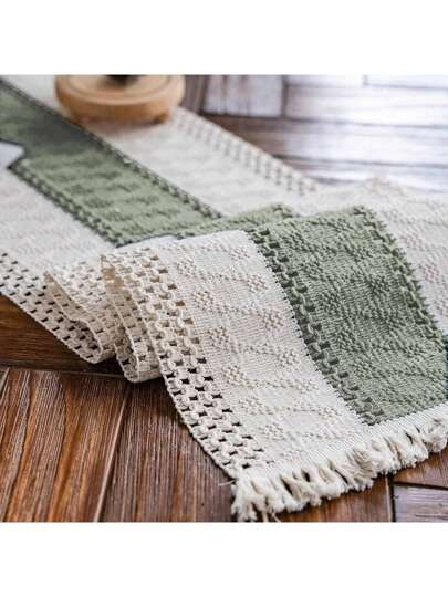 Camino de mesa bohemio, corredores de mesa de macramé para decoración del hogar, corredor de mesa de macramé crema y marrón con flecos para decoración boho de comedor, dormitorio, y fiesta nupcial rústica - Verde - Añade 3