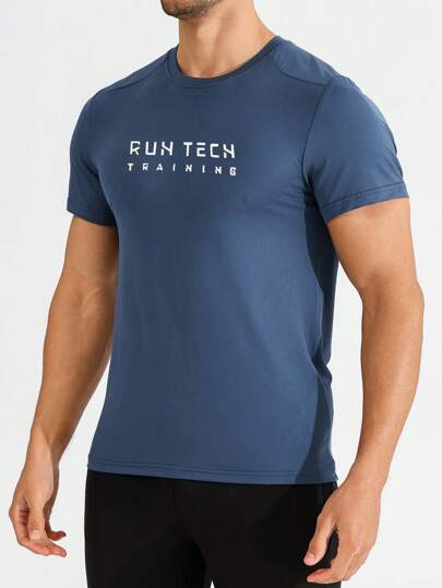 Manfinity Sport Corelite Camiseta deportiva suelta estampada de estilo novio para hombre - Azul - Añade 1
