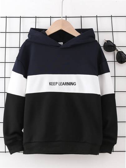 Chicos Capucha con estampado de letra de color combinado de hombros caídos - Multicolor - Añade 3