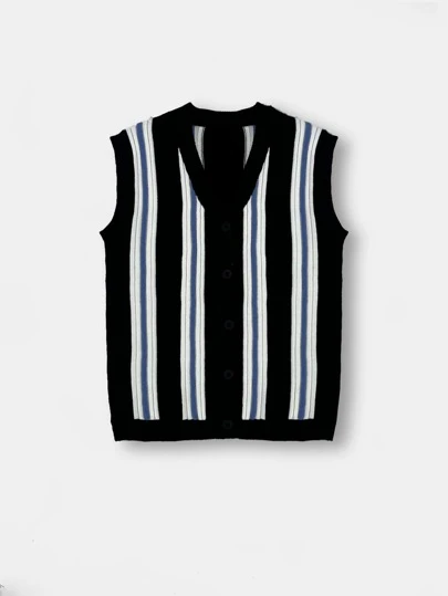 Niños Cárdigan de chaleco de rayas verticales - Blanco y Negro - Añade 1