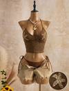 Lyxana Top halter sin espalda con diseño de estrella de cinco puntas hueca y lentejuelas en marrón, para vacaciones y uso casual, primavera/verano