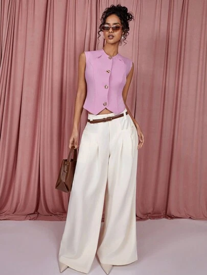 COSMINA Chaqueta minimalista sin mangas con botones delanteros de unicolor para mujer, uso diario casual - Rosa - Añade 1