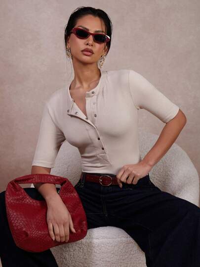 COSMINA Blusa casual de mujer de unicolor, de manga corta y con un solo botonadura - Crema - Añade 5