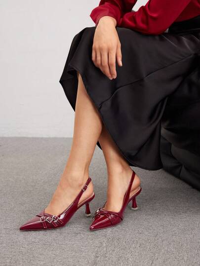 CUCCOO BIZCHIC Zapatos de tacón alto de punta fina de unicolor para mujer, zapatos de tacón Burdeos para fiestas de Navidad, otoño, Año Nuevo, Día de San Valentín - Burdeos - Añade 2