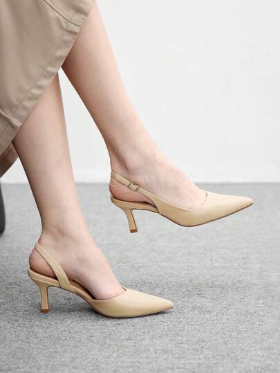 CUCCOO BIZCHIC Tacones de aguja de punta fina para mujer, de tacón alto y estilo minimalista con tira posterior, aptos para ir al trabajo, citas, fiestas y vacaciones - Albaricoque - Añade 1
