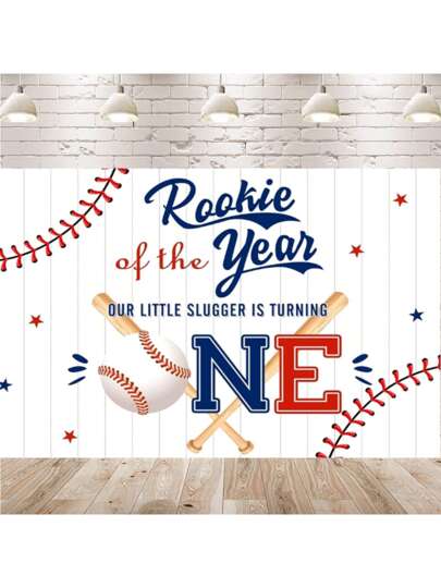 [Fondo de cabina fotográfica de vinilo] Fiesta de primer cumpleaños con temática de béisbol - Diseño Rookie of the Year, placa de madera azul y roja de bateador, fondo de cabina fotográfica de vinilo para celebraciones - Multicolor - Añade 1