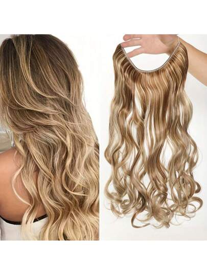 Extensiones de cabello rizado invisible con clip para mujeres - Resistente al calor, piezas de cabello sintético largo - Color Piano - Añade 1