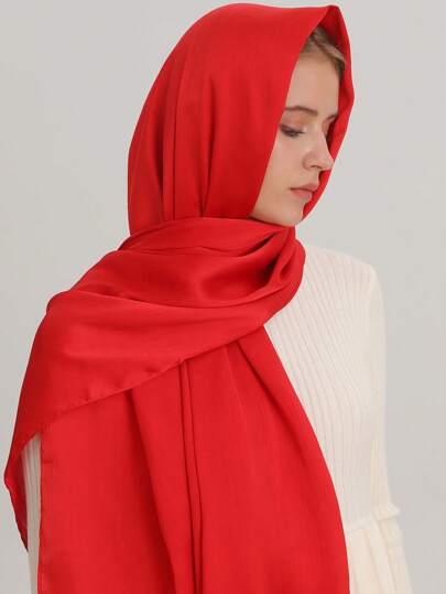 1 pieza Bufanda rectangular de mujer elegante de seda sintética roja, pañuelo, bufanda para el cuello de mujer, chal, envolvente de mujer ligero y delgado de unicolor y cómodo - Rojo - Añade 1
