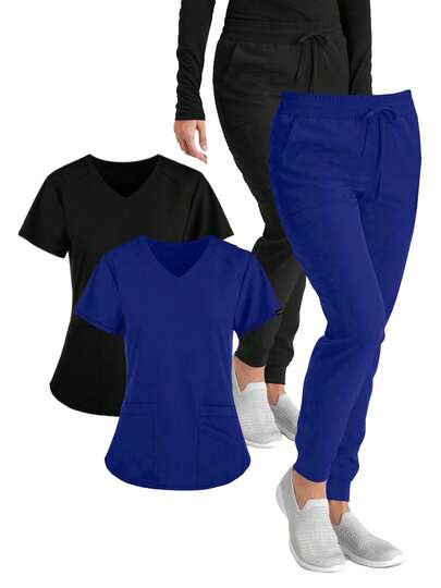 (Conjunto de cuatro piezas) Uniforme médico para mujer, para correr, deportivo, elástico, mate, uniforme de enfermera, ropa de lavado, ropa de trabajo, camisa médica transpirable - azul real - Añade 3