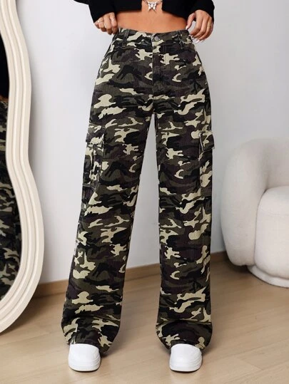Jeans de pierna recta con estampado de camuflaje - Multicolor - Añade 1