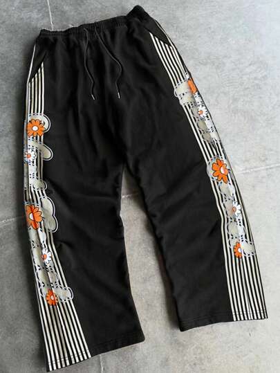 Manfinity EMRG Pantalones de chándal casuales estampados para hombres - Negro - Añade 4