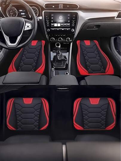 Juego de 4 alfombrillas de coche: resistentes al desgaste, resistentes a las manchas y fáciles de limpiar. - A - Añade 4