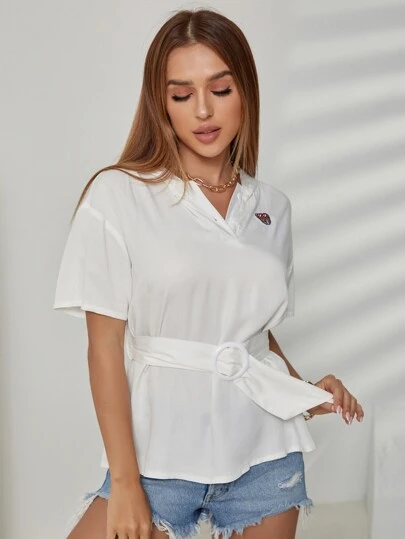 Mulvari Camiseta Con Capucha Y Cinturón Con Bordado De Oso De Dibujos Animados - Blanco - Añade 5