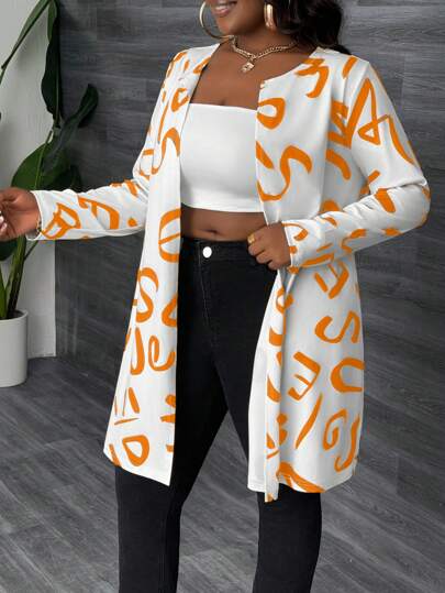 Slaydiva Chaqueta informal básica - Chaqueta de punto elástica suelta con estampado gráfico de letras, talla grande - Naranja - Añade 7