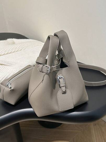 Bolso de mano / bandolera / de hombro casual, simple y de moda de piel de PU con bolsillo interior - Gris - Añade 1