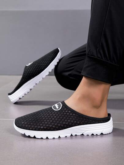 Zapatillas tipo slip-on de malla transpirable, de unicolor, versátiles para el verano - Negro - Añade 4