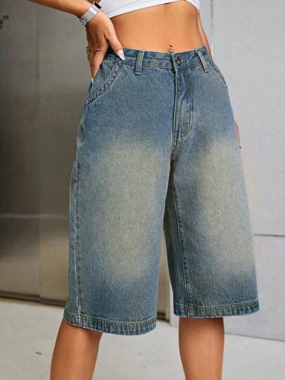 SHEIN EZwear Shorts vaqueros informales cortos lavados con corte holgado - Lavado ligero - Añade 5