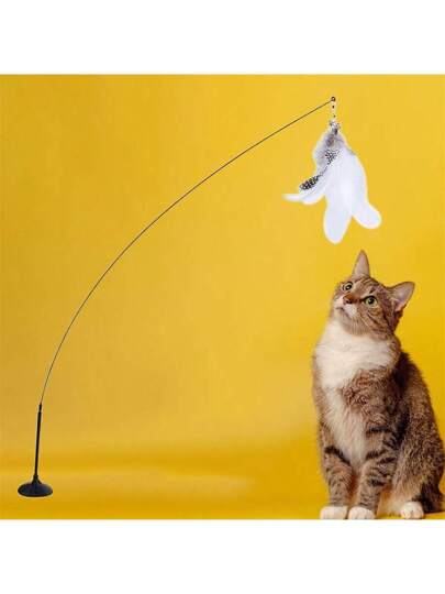 Cat Wand Toy Bird With Suction Cup Fixed To The Floor - Blanco - Añade 11