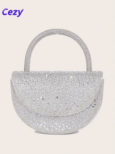 Cezy 1 pieza Elegante bolso de mano plateado de strass, forro de poliéster resistente - Correa para el hombro desmontable y cierre magnético - Clutch ligero para la noche, adecuado para bodas, fiestas y eventos formales - Plateado - Añade 1