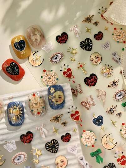 Uñas de bruja encantadoras, uñas elegantes, pegatinas de estilo de bruja, diseños de uñas con flores lindas, 3D, calcomanías, diseños de uñas Kawaii, arte de dibujos animados Kawaii