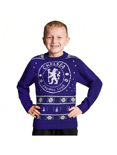 Chelsea F.C. Christmas Jumper Warm Cosy Football Xmas Gift - Azul - Añade 3