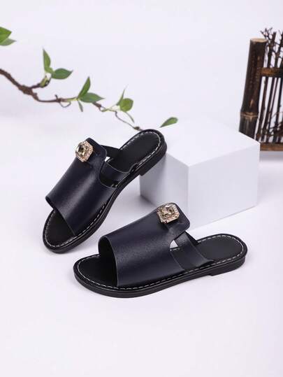 Sandalias de moda para niños - Estilo nuevo de verano con bolso con pedrería, punta descubierta, diseño antideslizante, versátiles y elegantes para la playa - azul real - Añade 1