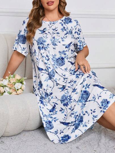 Snug Zone Camisón de estilo chino con estampado de porcelana azul y blanco, vestido de dormir Moo Moo de talla grande - Multicolor - Añade 1