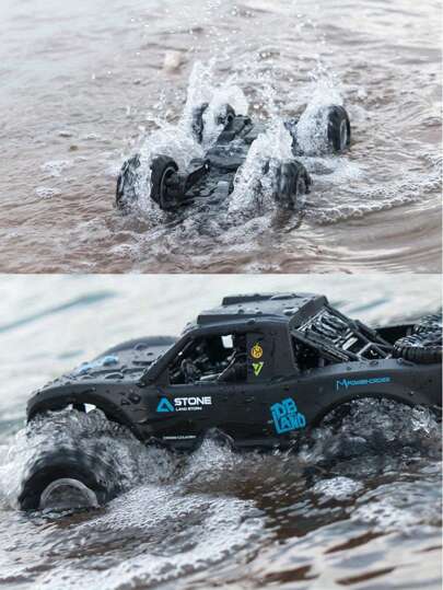 Decoración navideña Camión RC anfibio todoterreno de 2.4G, Coche RC de 8 ruedas con control remoto para escalar, Coche de acrobacias resistente al agua, Regalo navideño para niños - Multicolor - Añade 16