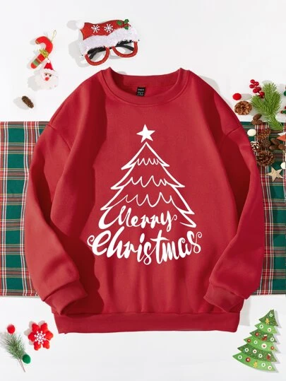 Sudadera con estampado de Navidad de hombros caídos para Navidad - Burdeos - Añade 1