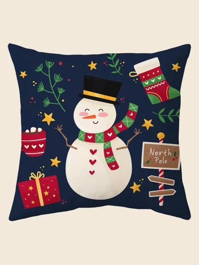 Funda de cojín sin relleno Navidad con muñeca de nieve con estampado - Multicolor - Añade 1