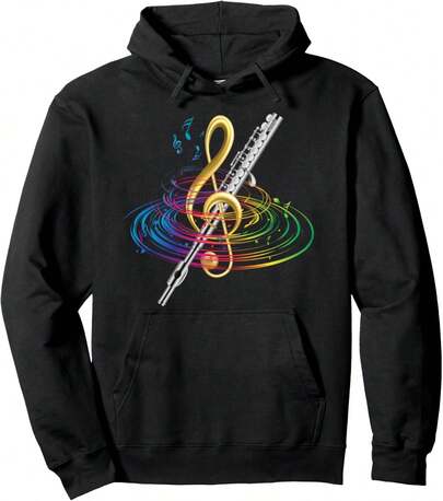 Classical Music Treble Clef Flutist Gift Flute Pullover Hoodie - Negro - Añade 1