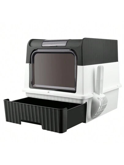 Caja de arena para gatos cerrada, inodoro plegable, incluye pala para arena y bolsa desodorizante, bandeja extraíble, para gatos pequeños y medianos, capacidad de carga 8 kg - Negro - Añade 1