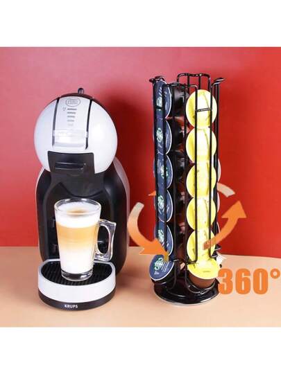 Soporte giratorio para 24 cápsulas de café, diseño moderno negro, compatible con Verismo, Lavazza Blue, CBTL, K-Fee, Tchibo Cafissimo, sistemas Caffitaly y otras marcas de cápsulas de café, adecuado para encimera de cocina en el hogar u oficina - Multicolor - Añade 5