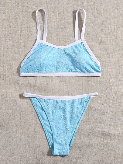 Bikini tanga con ribete de contraste de verano - Azul - Añade 1