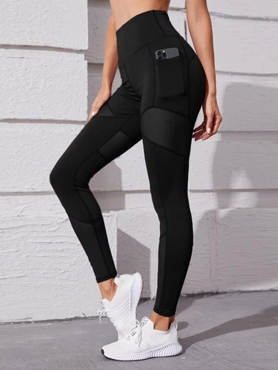 Yoga Futuristic Leggings deportivos de malla en contraste con bolsillo de móvil - Negro - Añade 1