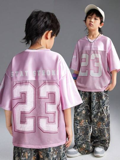 Coolane Kids Camiseta de fútbol rosa con estampado de número del día del juego de ropa deportiva de primavera para niño preadolescente - Rosa - Añade 4
