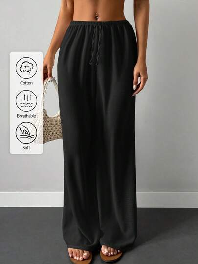 EURMUSE Pantalones de pierna ancha con cintura elástica de 95% algodón - Negro - Añade 1