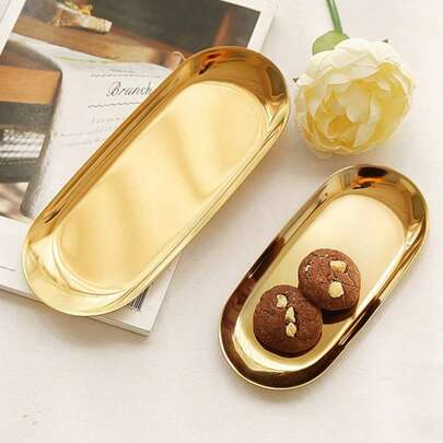 Bandeja ovalada de metal (dorado), fuente de servir navideña dorada, plato de frutas, plato de postre, plato de aperitivos, plato de ensalada, plato de pastel, apto para restaurante, cocina, mesa de comedor, Navidad - Dorado - Añade 1