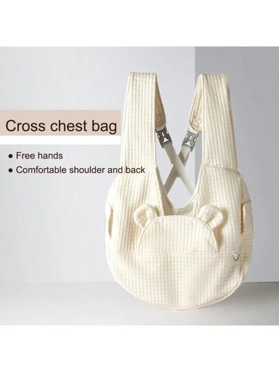 Bolso bandolera para mascotas, mochila de gran capacidad con correas ajustables para gatos y perros pequeños. Hecho de malla de waffle suave y transpirable, diseño doble anti-escape, fácil de limpiar y llevar. - Beis - Añade 1