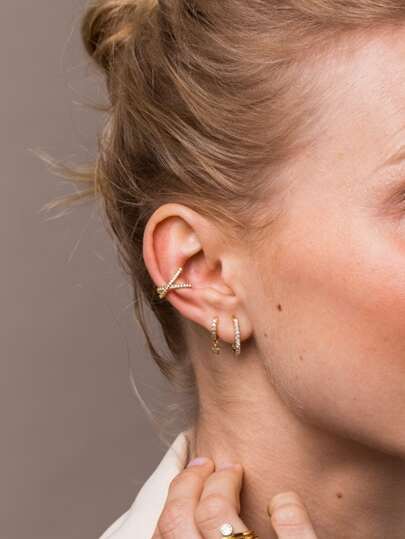Pendientes de aro de plata con decoración de circonita cúbica para mujer, joyería fina para boda nupcial - Amarillo Oro - Añade 3