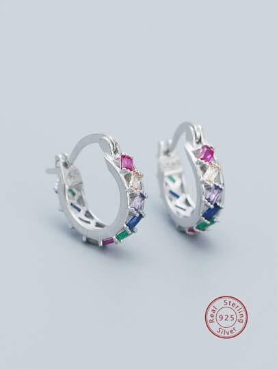 Pendientes de aro zirconia cúbica adorno plata - Plateado - Añade 2