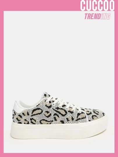 Cuccoo Zapatillas deportivas tejidas de leopardo con cordón delantero - Beis - Añade 4