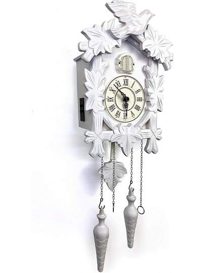 Reloj de cuco vintage grande de madera para pared, hecho a mano de 13x9,5 pulgadas (Blanco) - Blanco - Añade 1