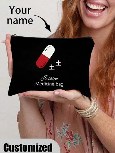 Neceser personalizado de primeros auxilios y maquillaje - Organizador de artículos de tocador de viaje con cremallera, personalizado, ligero y resistente a la decoloración - Regalo perfecto para fiestas - Negro - Añade 1