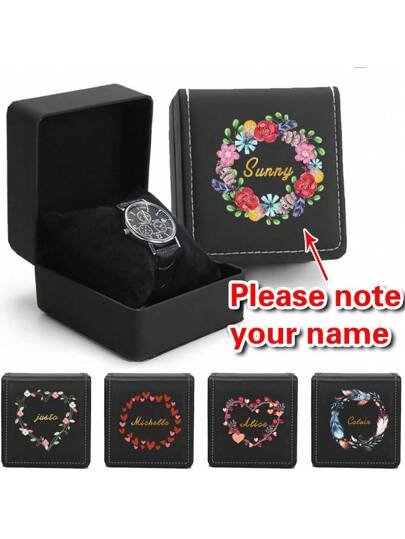 Caja portátil personalizada de 1 reloj, organizador de almacenamiento protector de cuero PU con interior suave, estuche de exhibición de relojes durable como regalo para coleccionistas y entusiastas de relojes de hombres y mujeres - Negro - Añade 1