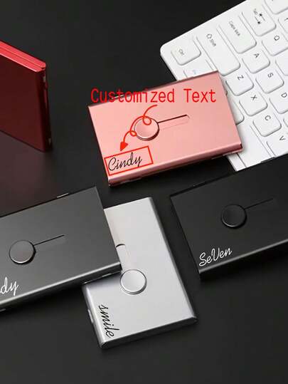 Estuche personalizado para tarjetas de visita de empuje ligero, portador de tarjetas automático, caja de tarjetas de metal mate, de vuelta a la escuela, útiles escolares - Multicolor - Añade 1