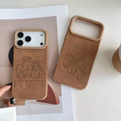 Funda de teléfono de cuero suave personalizada con diseño de arte lineal, compatible con iPhone 17/16/15/14/13/12/11 Pro Max y series Plus, protección de lente, anti-caída y resistente al desgaste, tecnología de impresión UV, estilo de pincelada manuscrita, regalo perfecto para cumpleaños y aniversario - Caqui - Añade 4